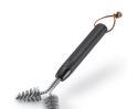 Щетка для очистки решетки для приготовления имеет ручку из бамбука, щетинки из нержавеющей стали и зубчатый скребок для особо въевшихся загрязнений.